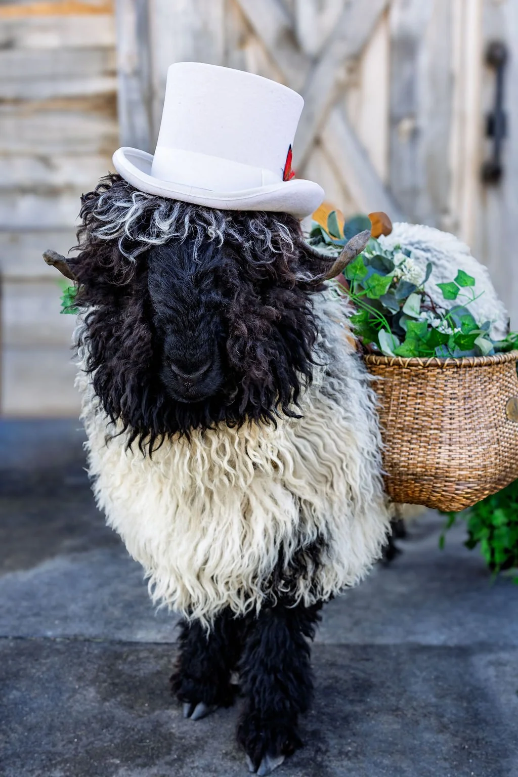 Whether our Miniature Donkeys or rare Valais Blacknose Sheep are meeting you at a venue or you are experience them through one of our farm experiences, our servers come dressed to the 9’s including a pack saddle with two baskets hanging from each side. They can carry any thing from beverages, to party favors, to sweet treats. To add to the magic, they will be decorated in eloquent greenery turning any picture into pure gold.